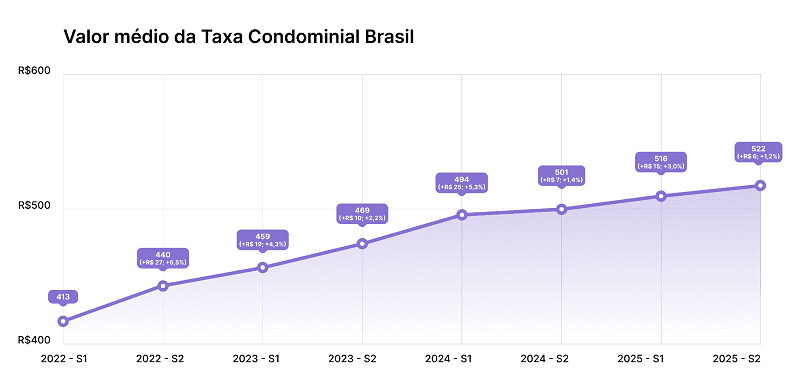 Veja a evolução semestral da taxa condominial desde 2022